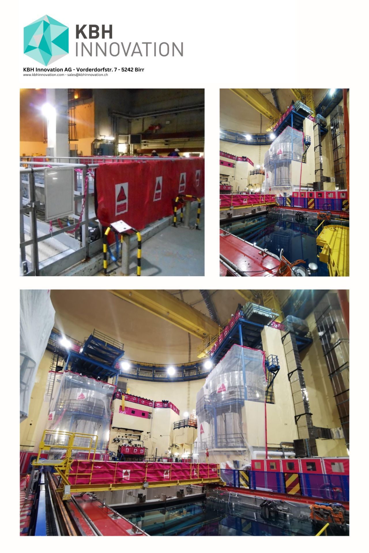 The tool shown is a lateral protective cover for manholes – specifically designed to safeguard manhole seals. The tool features strong integrated magnets that securely attach it to the manhole wall. Additional holes around the tool allow continued use of existing bolts for fixation. The construction consists of two membrane layers, providing enhanced safety and stability. It has already been deployed, for example, at the EPR Flamanville 3 site. The internal foam lining adds extra protection and safety for surrounding equipment. A fascinating example of how smart design details contribute to safety, efficiency, and protection in everyday operations.