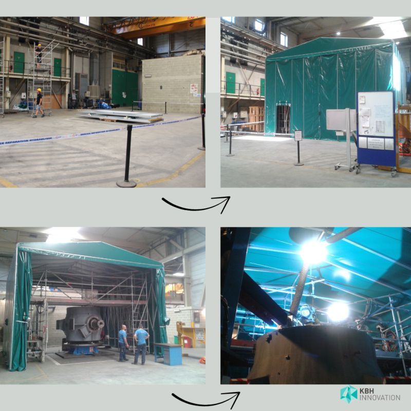 Flexible Industrial Tunnels for Safe and Efficient Maintenance This custom-built enclosure was integrated directly into a maintenance hall, making it ideal for work on large machinery components, including welding operations. The structure is fire-rated A2–M0, meeting the highest safety standards. Foldable and modular: The tunnel can be quickly collapsed, allowing machinery parts to be exchanged by crane without a complete rebuild — saving significant setup time. A true all-rounder: these tunnels are suitable for containment operations, storage, restoration work, garage solutions, handling areas, magnetic inspection applications, and many other industrial uses. Interested in flexible solutions for maintenance, protection, or enclosures? We’re here to help.